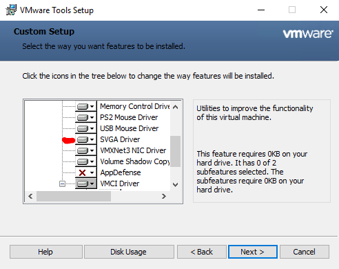 Step 01: Try installing the VM tools by deselecting the Video Driver (Custom Installation)